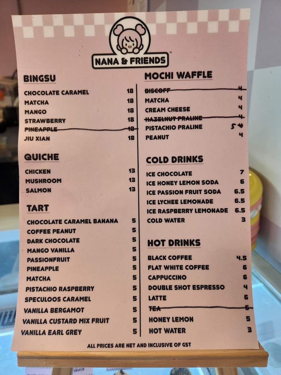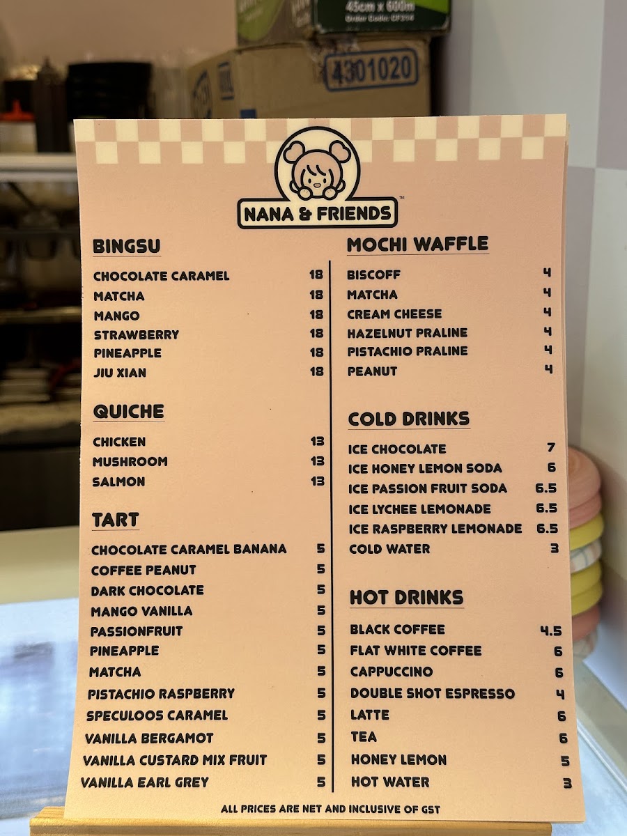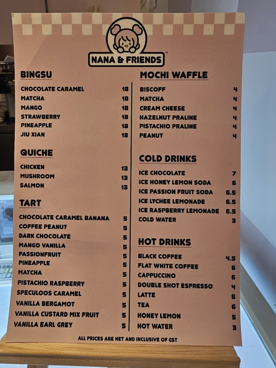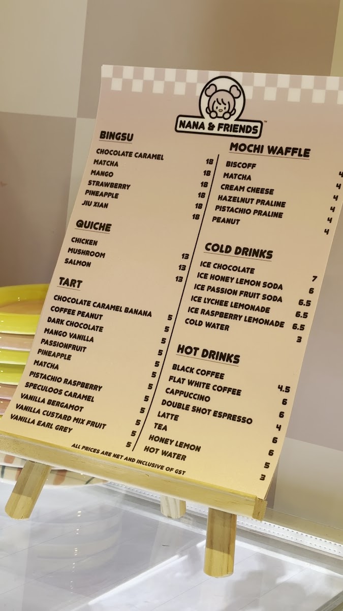 Nana and Friends Cafe Menu